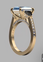 $1065 for this ring with 3.5ct(7.5*9.5mm) DEF color radiant moissanite center, 2 pieces 0.5ct trillion stardust grey moissanite accents, round moissanite accents in 10K yellow gold. Size 5.5(half eternity) --After 10% off, the price is $958.5.