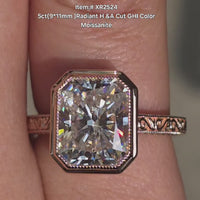 Radiant carved bezel solitaire moissanite engagement ring| DovEggs – DovEggs-Seattle