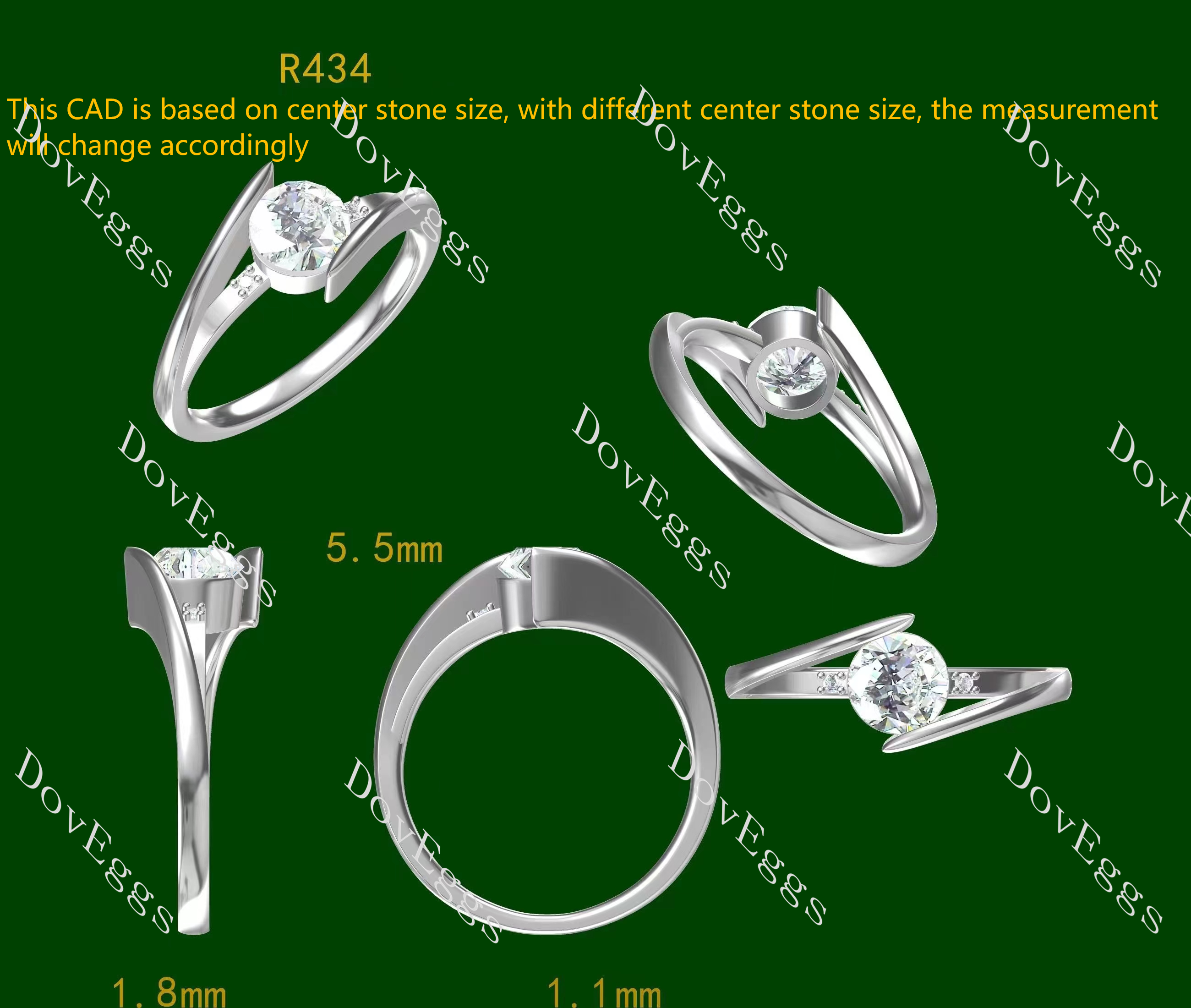 Center stone: 1ct(6.5mm), H&A Cut, Round, GHI (near colorless) moissanite, VS1-VVS1 clarity