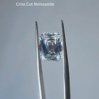 Center stone: 2ct(6*8mm), criss cut, GHI color(near colorless) moissanite, VS1-VVS1 clarity