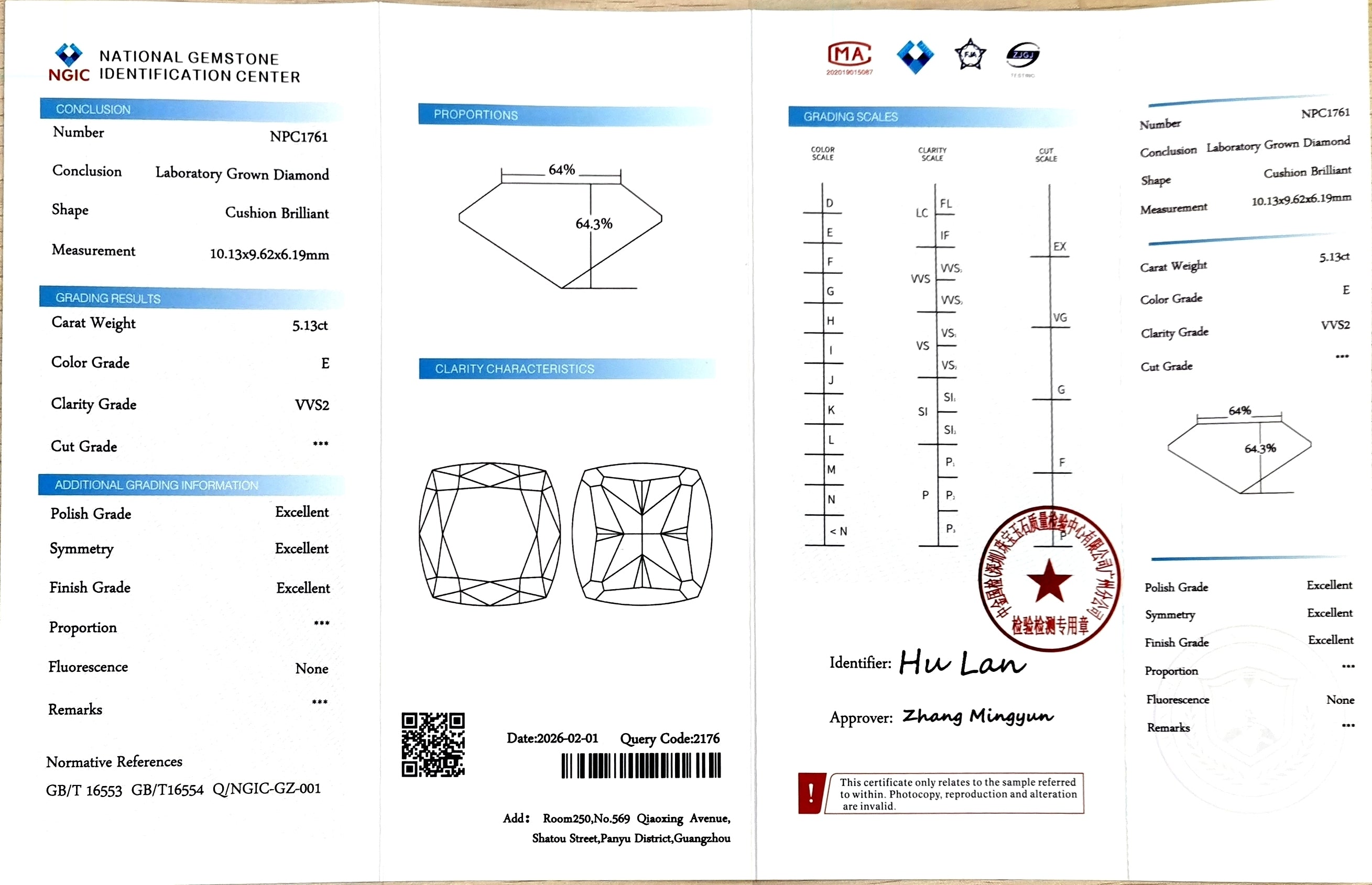 NGIC Certificate #: NPC1761(We will ship the lab-grown diamond to you along with the IGI ertificate. You can scan the barcode on the report to access the third party certificate.)
