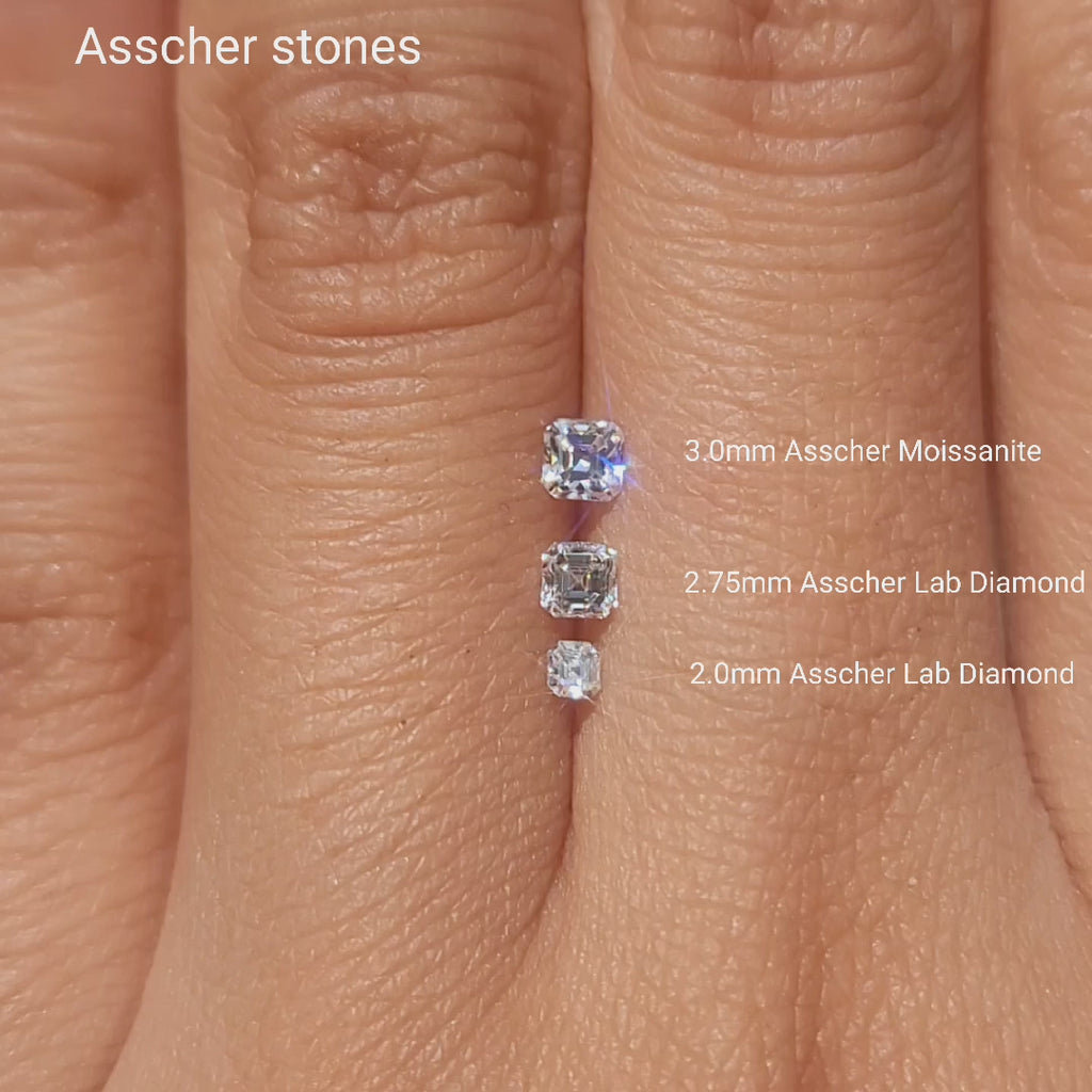 Stones of video/pics is 2*2mm/2.75*2.75mm/per asscher lab diamond accents.