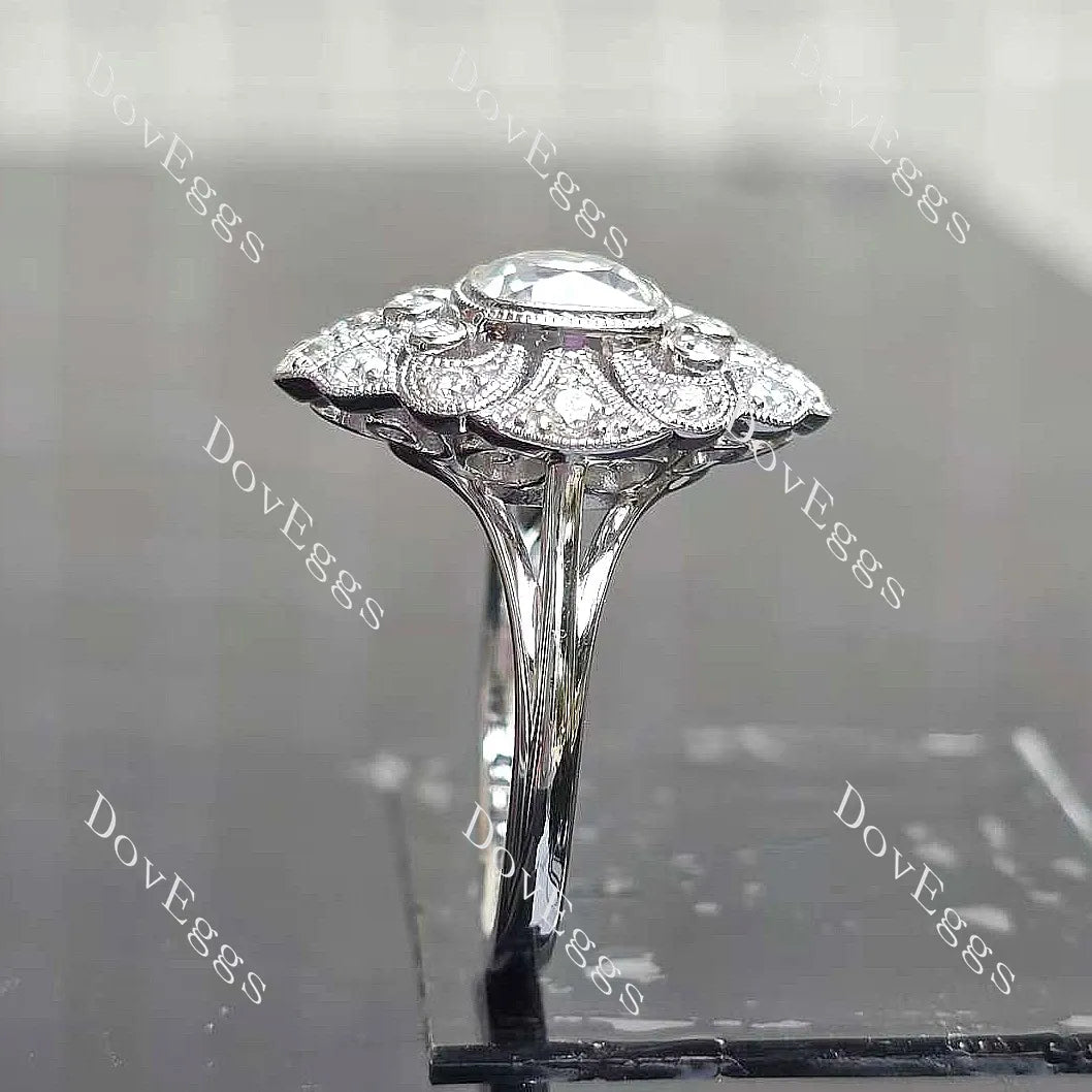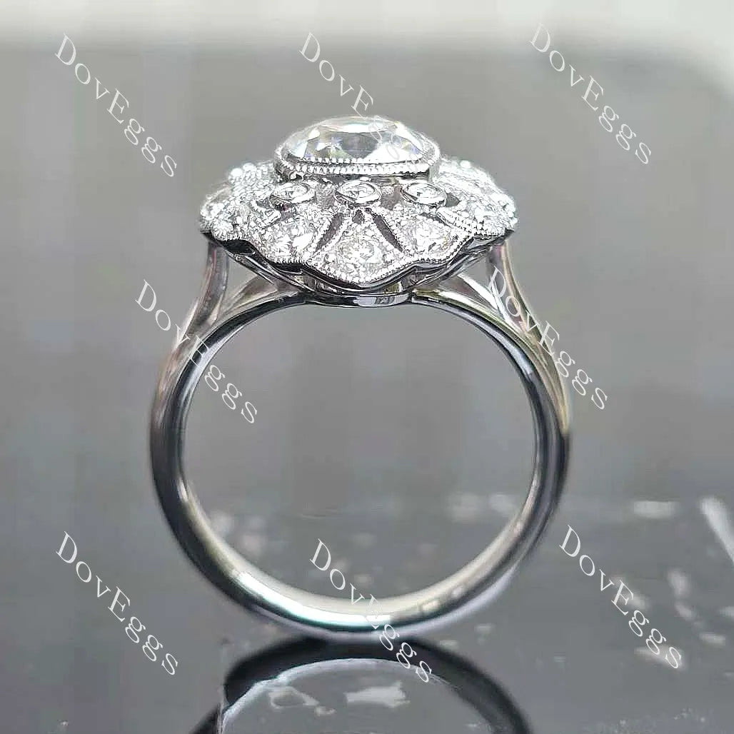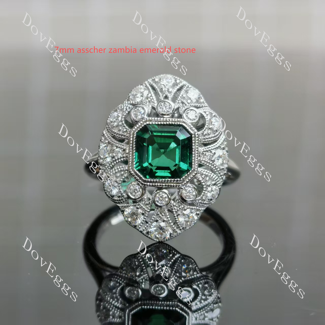 Center Stone: 2ct(7.5mm) Square Cushion Old Mine Cut, Vivid pigeon blood ruby, colored gem VS1-VVS1 clarity (For overall harmony, the size and shape of the center stone remain fixed and unaltered.)