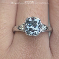 Center stone: 3ct(8*9mm) OMC Elongated Cushion, Stardust grey moissanite, VS1-VVS1 clarity