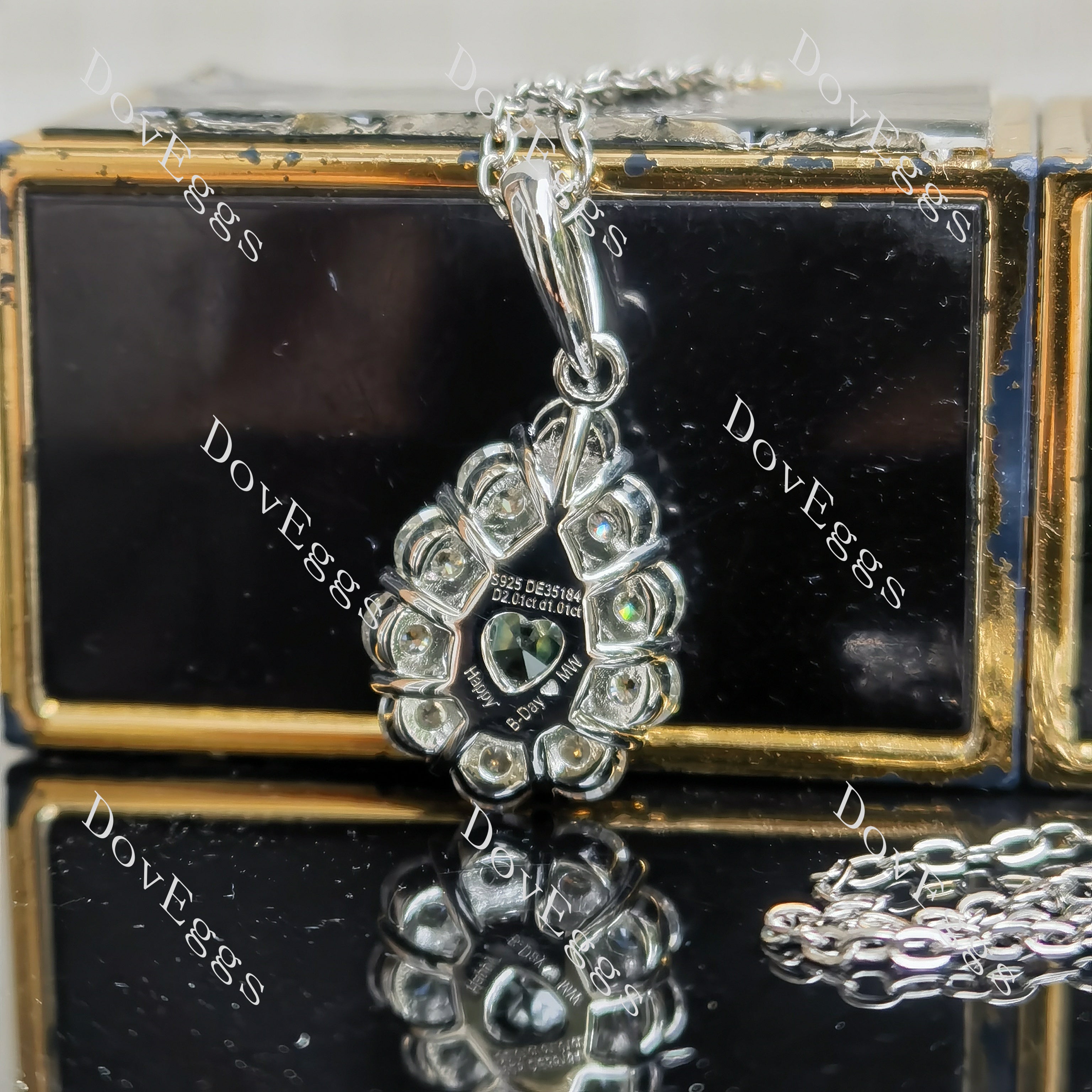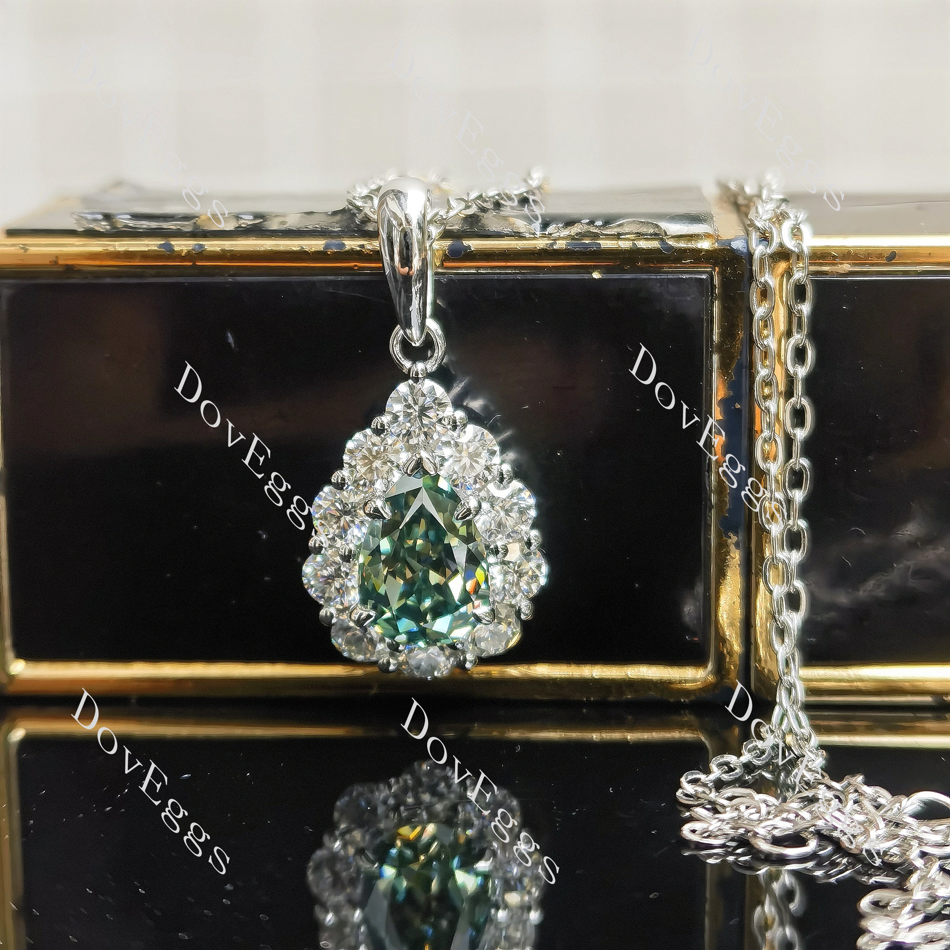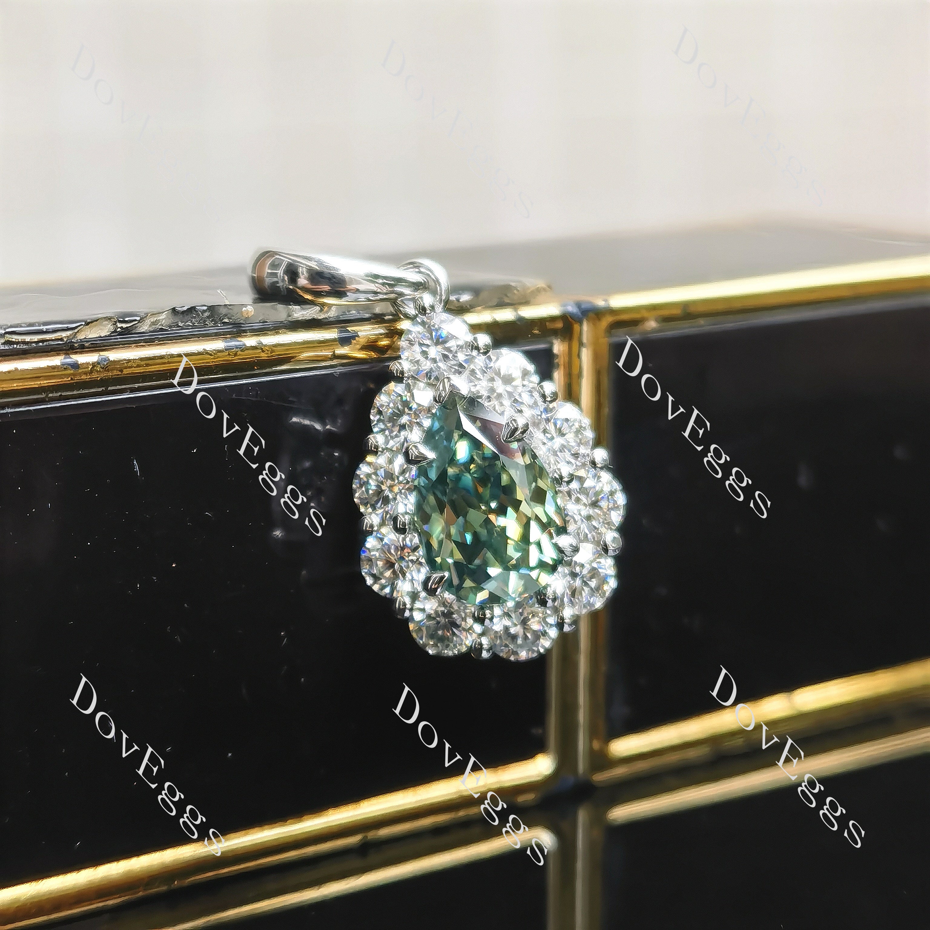 Center Stone: 2ct(6*9mm) Pear Astro cut, Peacock Blue moissanite, VS1-VVS1 clarity