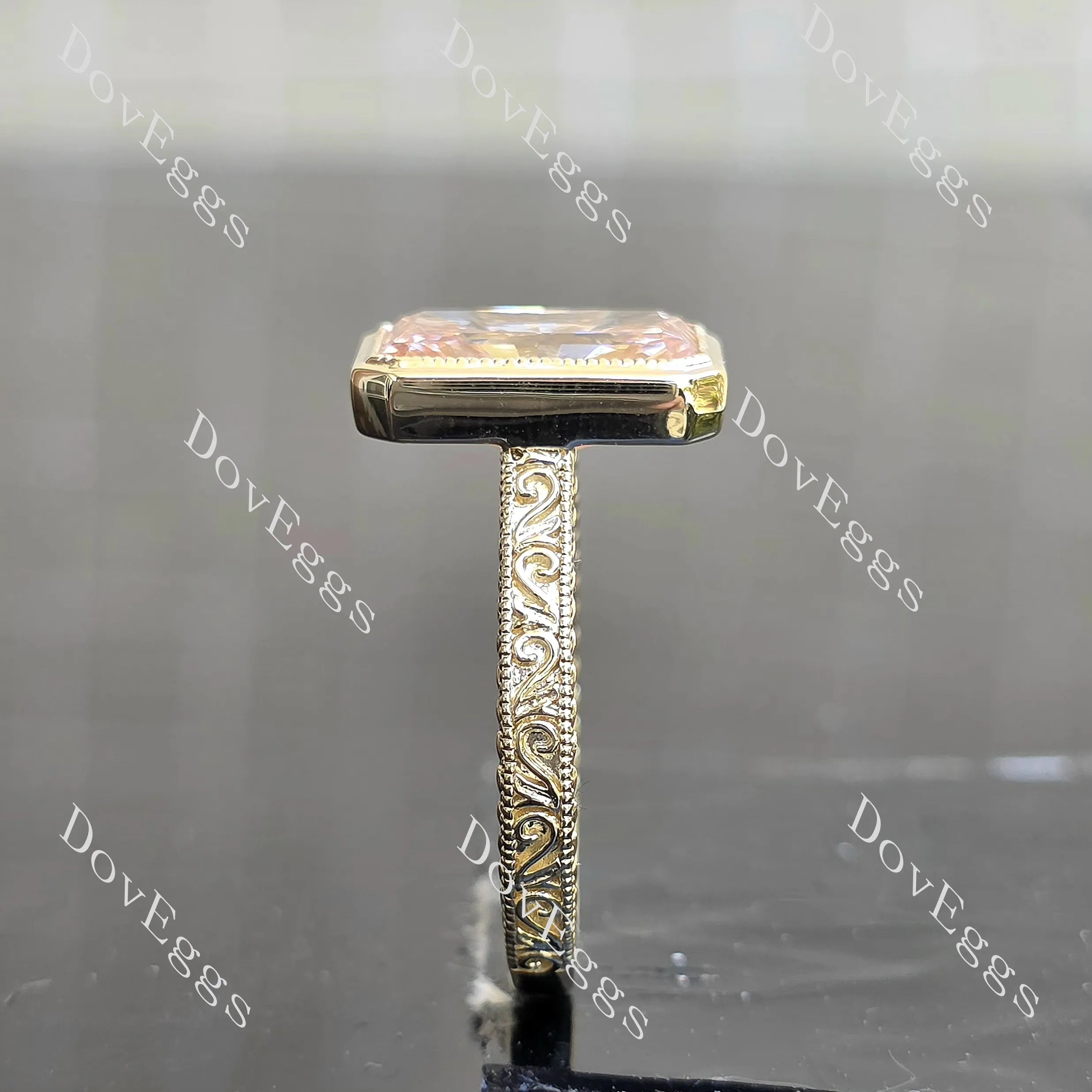 Radiant carved bezel solitaire moissanite engagement ring| DovEggs