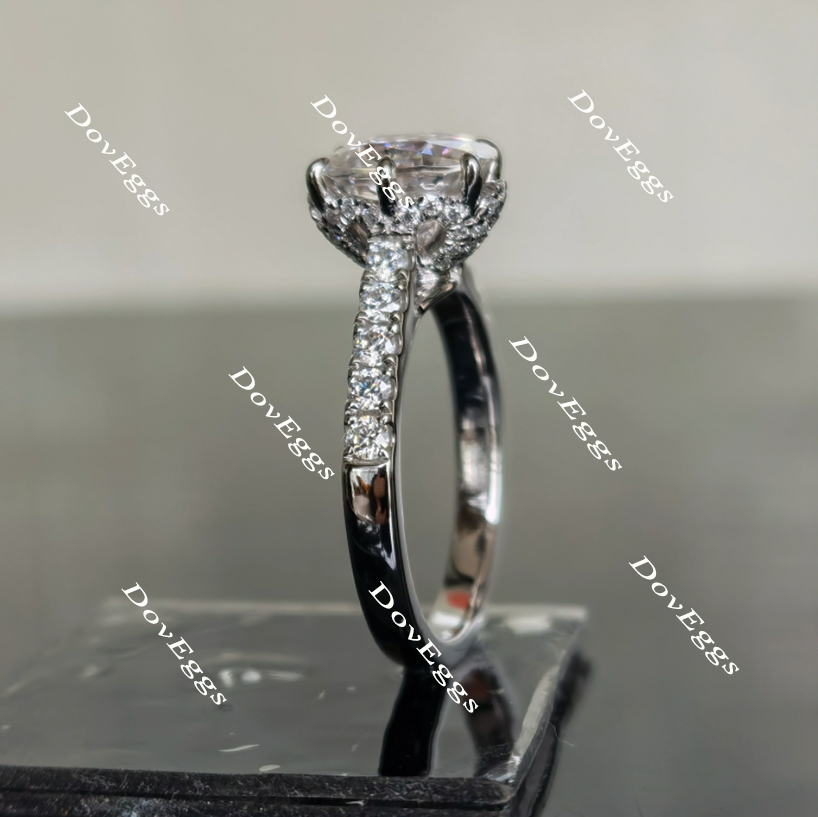 Oval half eternity paved moissanite engagement ring| DovEggs