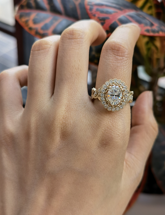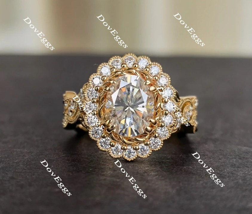 The Fiona-Oval flower shape moissanite engagement ring| DovEggs