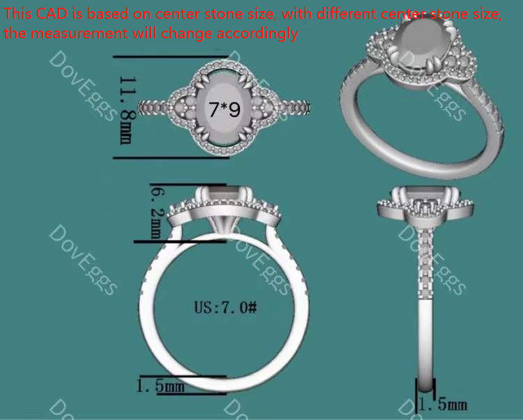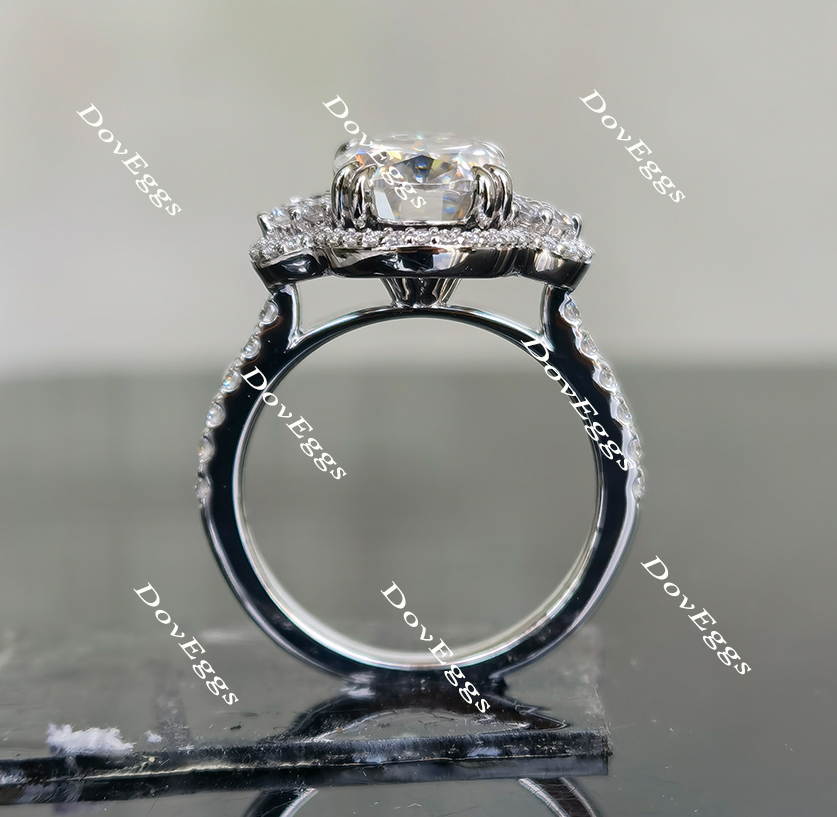 Oval floral art deco halo moissanite engagement ring| DovEggs