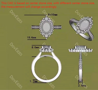 The center stone of picture is around 3ct(8*10mm) DEF color oval Astro cut DovEggs moissanite. Ring setting is 14k white gold.