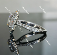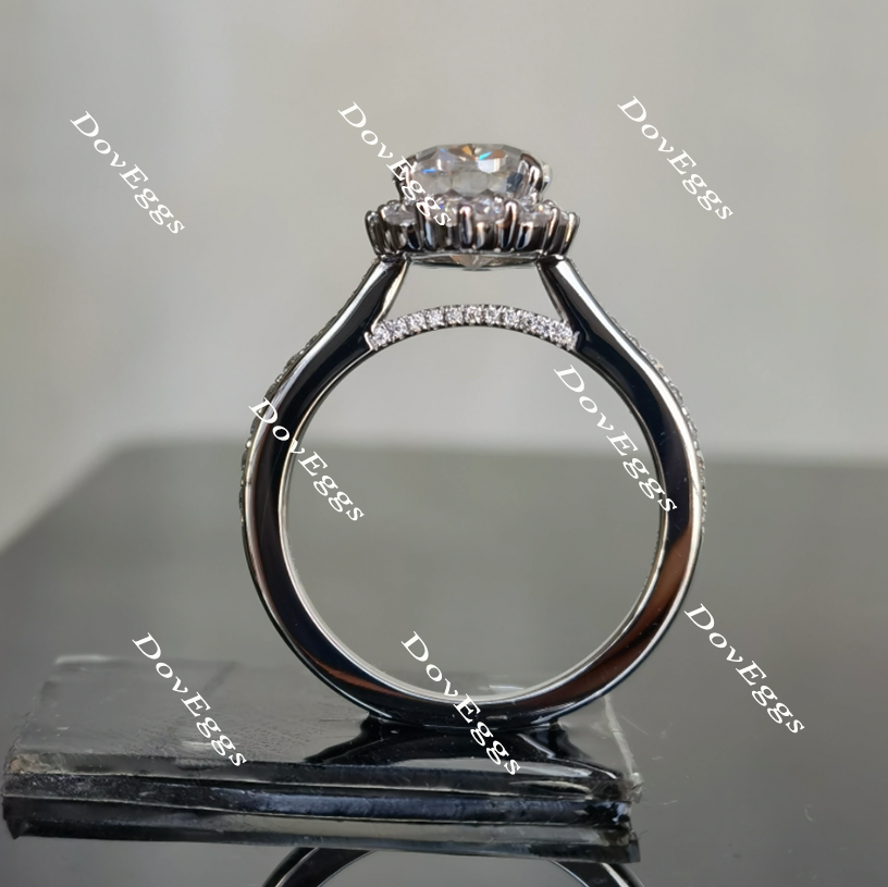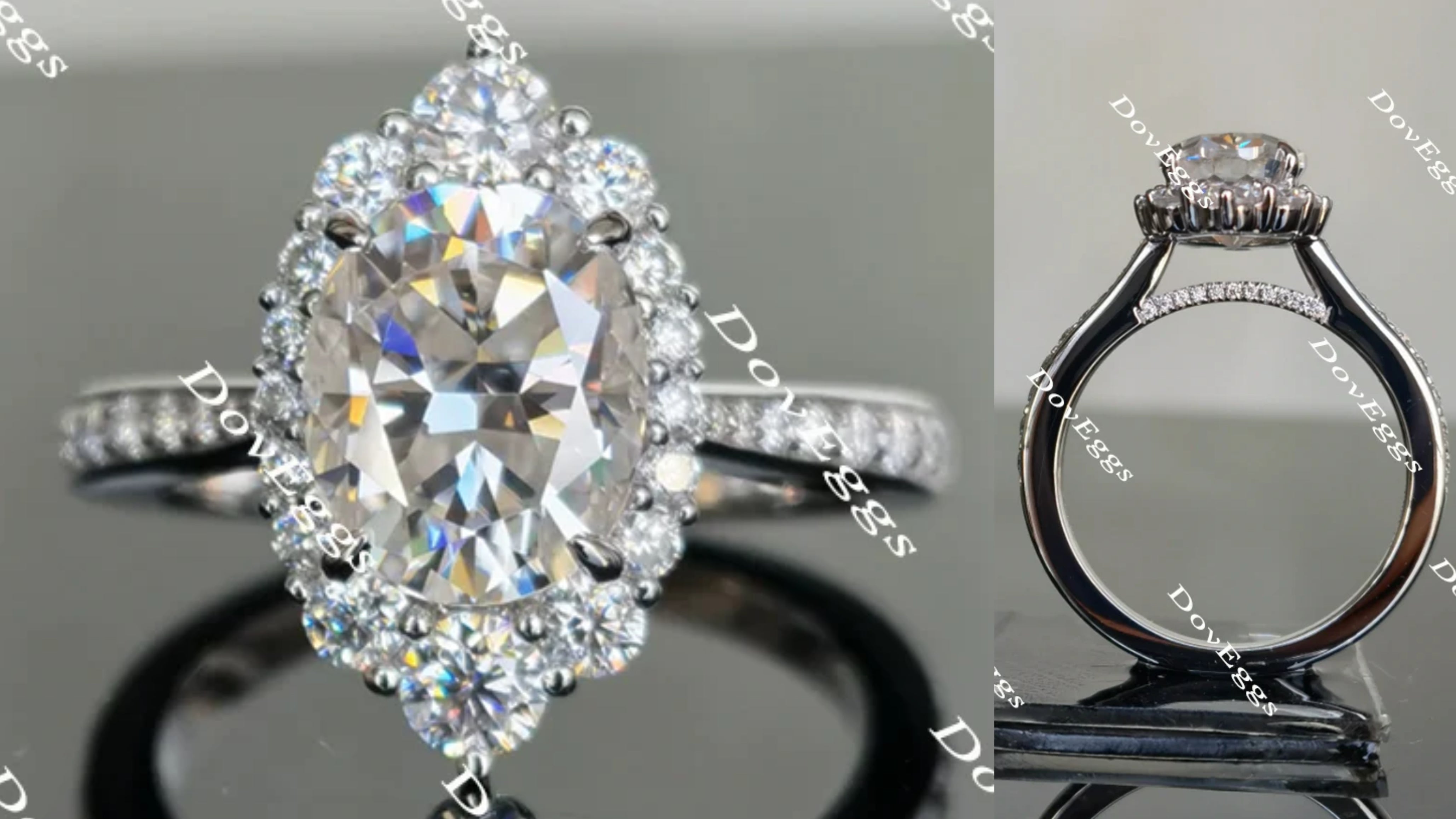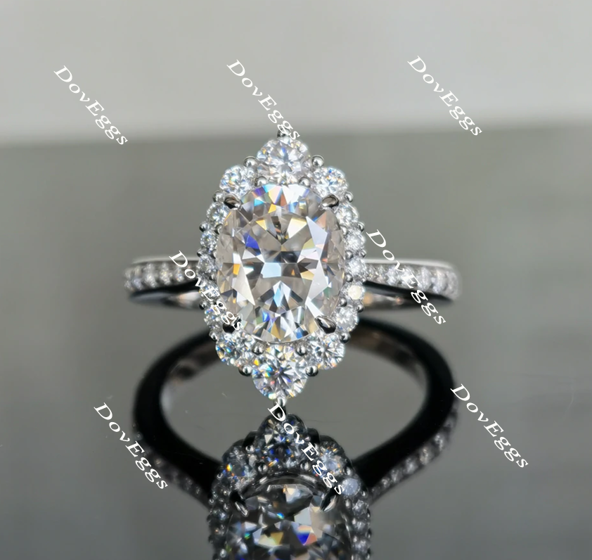 Oval half eternity pave halo moissanite engagement ring| Doveggs