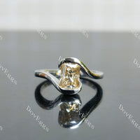 Radiant bezel solitaire colored moissanite engagement ring| DovEggs