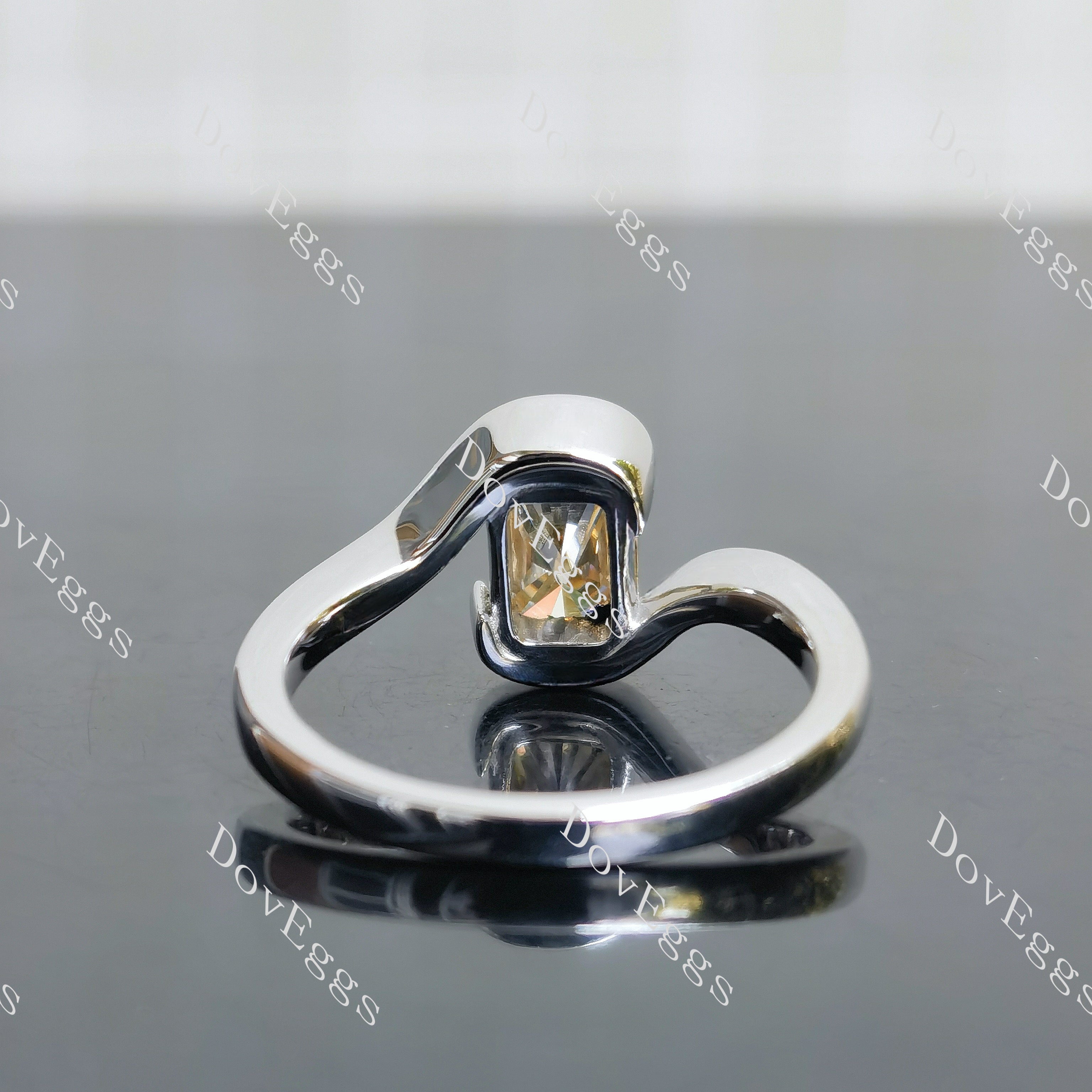Radiant bezel solitaire colored moissanite engagement ring| DovEggs – DovEggs-Seattle