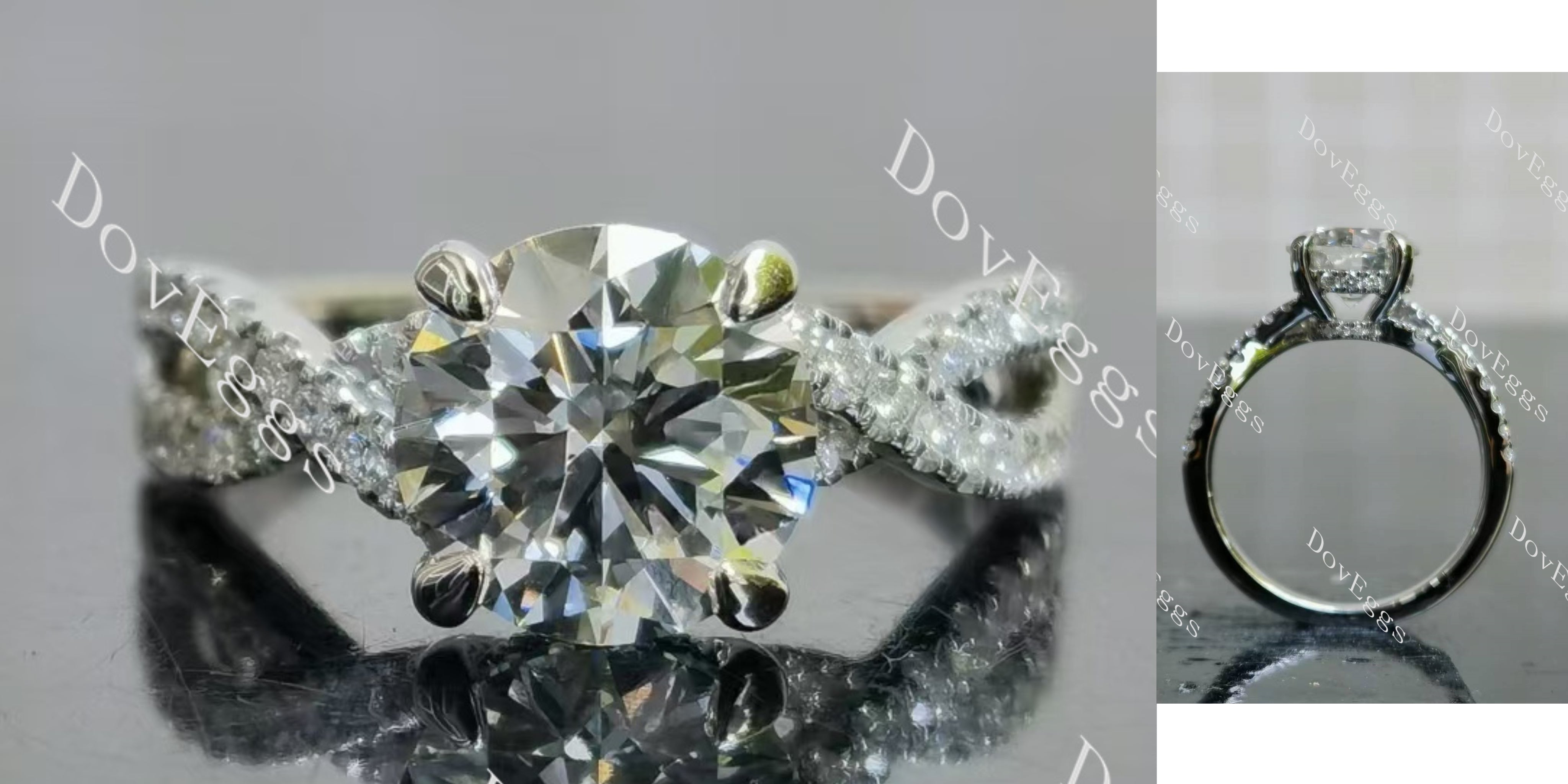 Center stone: Doveggs 2.08ct Round F color VVS2 Clarity lab diamond stone