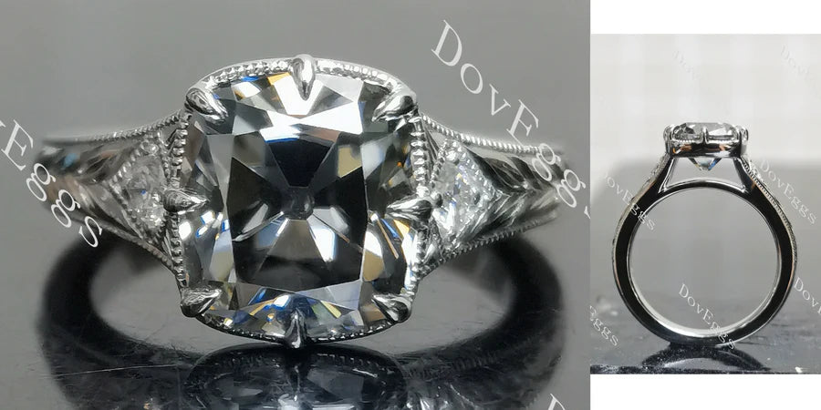 Three stones pave vintage lab diamond engagement ring only semi-mount only(Exclusively to DovEggs Stones)