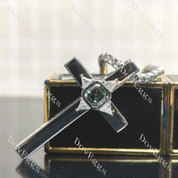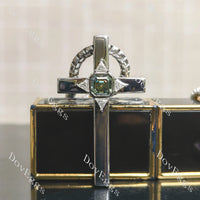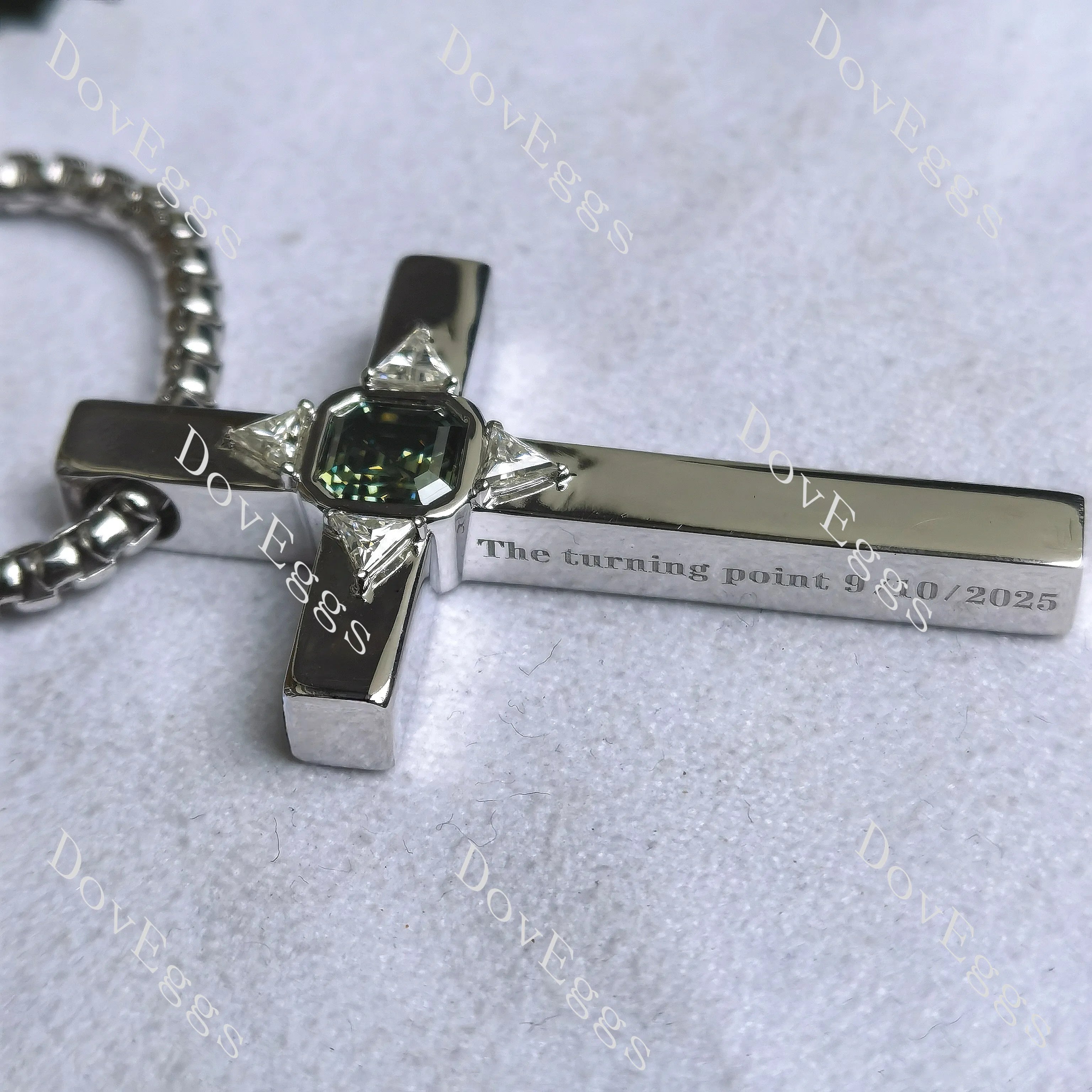 Center Stone: 1ct(6mm) Asscher, Accident color midnight evergreen moissanite, VS1-VVS1 clarity