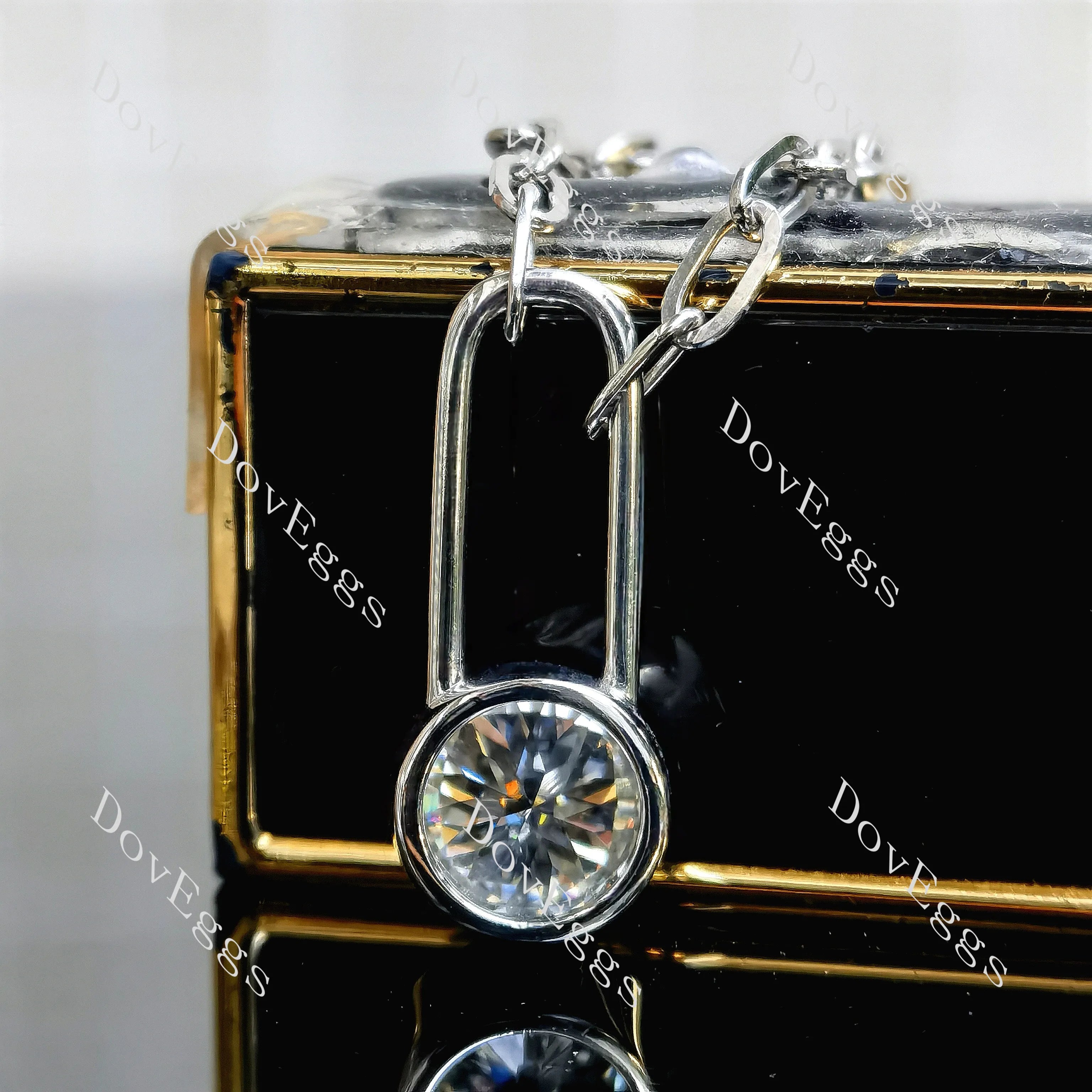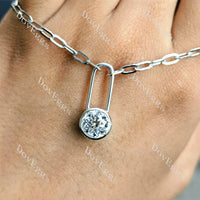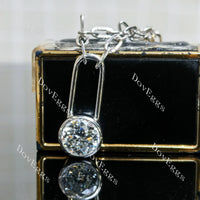 Round bezel solitaire moissnaite pendant necklace with 18"+2" length chain| Doveggs
