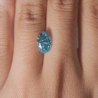 Center stone: 2.04ct(10.29x6.68x4.30mm), Oval Brilliant Cut, Fancy Vivid Bluish Green color, VS1 Clarity, Excellent cut