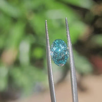 Center stone: 2.11ct(9.98x6.58x4.15mm), Oval Brilliant Cut, Fancy Vivid Bluish Green color, VVS1 Clarity, Excellent cut