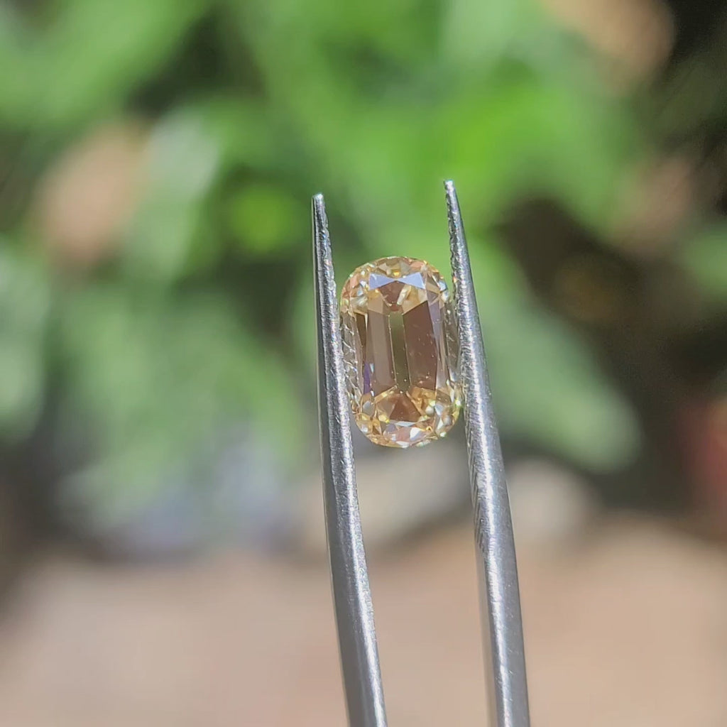 Center stone: 2.33ct(10.13x6.22x4.24mm), Cushion Old Mine Cut, Fancy Yellow color, VS1 Clarity, Excellent cut