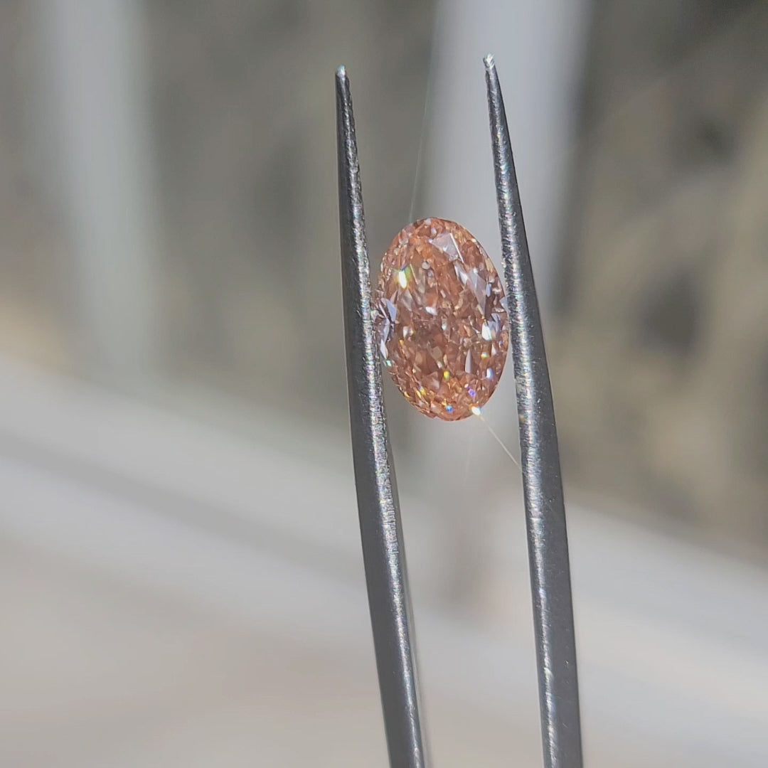 2.27ct Oval Brilliant Cut Lab Diamond - F. V. Orangy Pink Color VS1 | Doveggs Certified