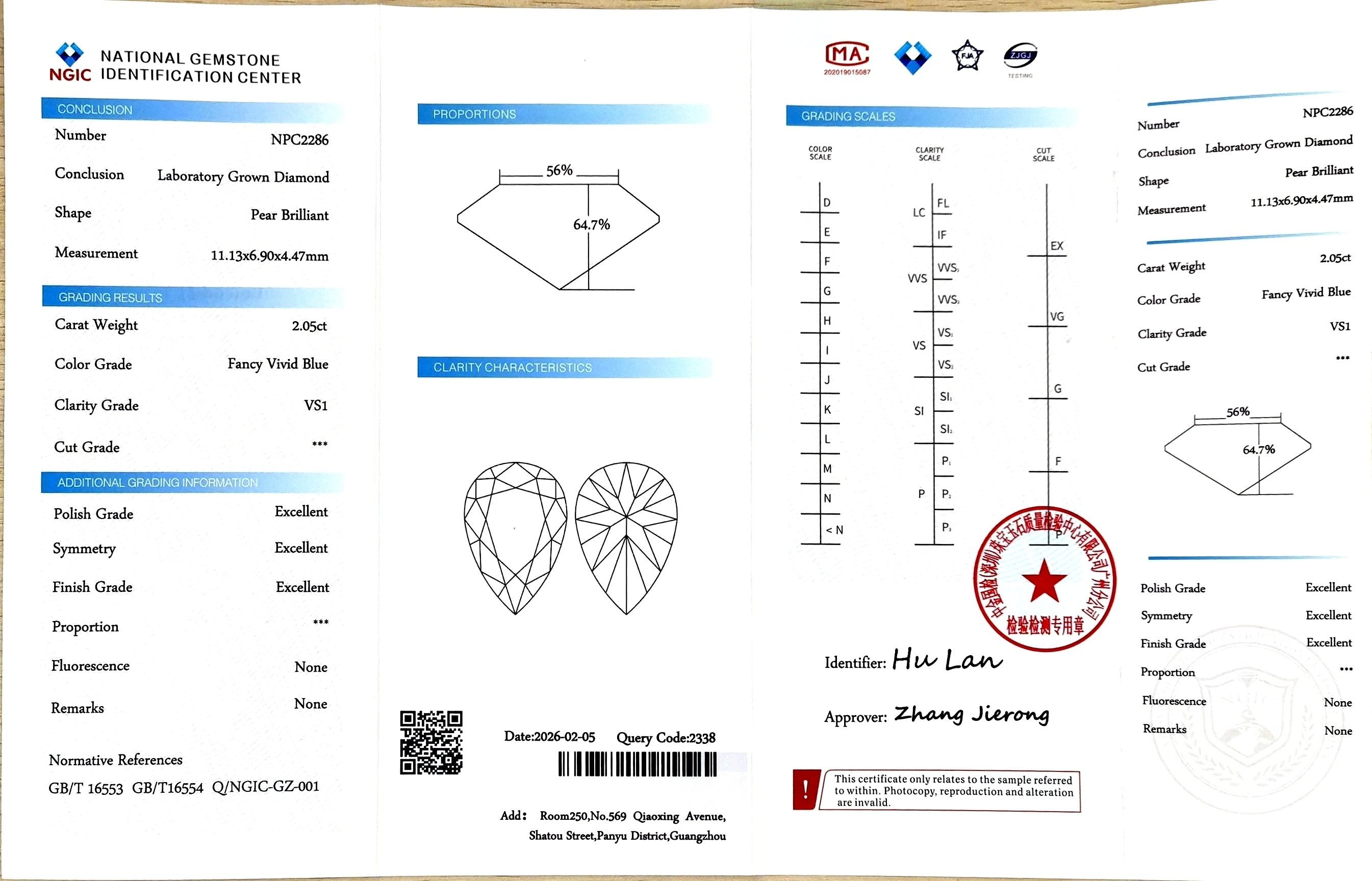 NGIC Certificate #: NPC2286(We will ship the lab-grown diamond to you along with the NGIC ertificate. You can scan the barcode on the report to access the third party certificate.)