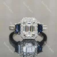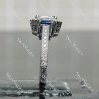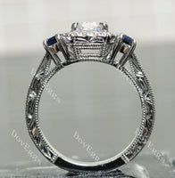 Elongated Krupp cut halo three stones engravd pave moissanite engagement ring| DovEggs
