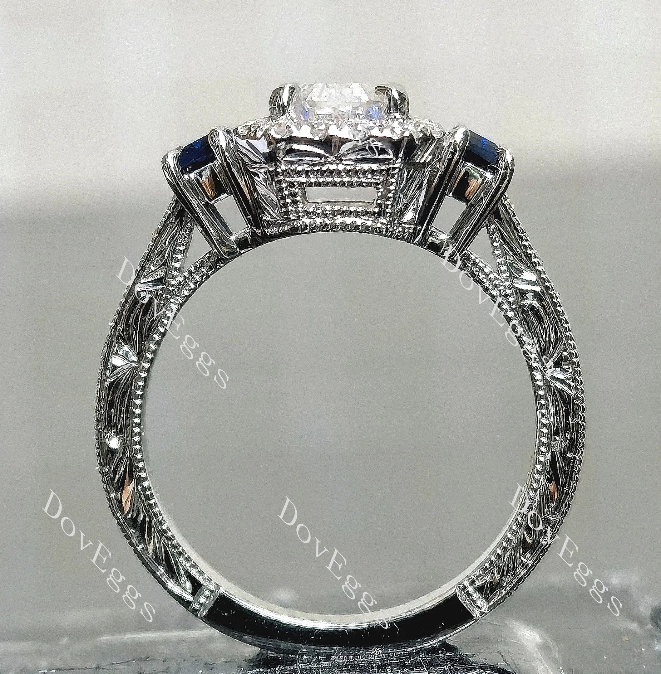 Elongated Krupp cut halo three stones engravd pave moissanite engageme – DovEggs-Seattle