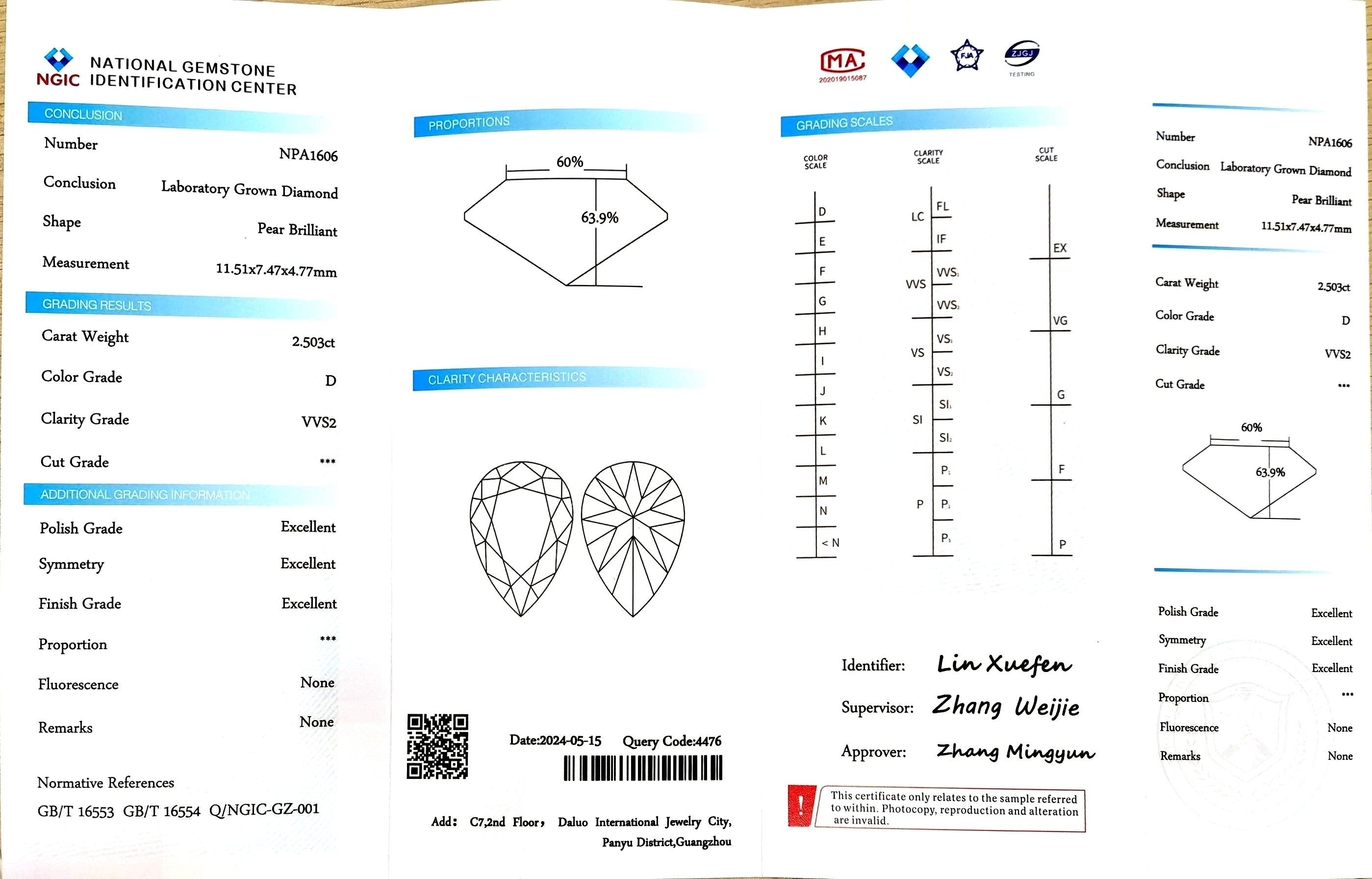 NGIC Certificate #: NPA1606(We will ship the lab-grown diamond to you along with the NGIC certificate. You can scan the barcode on the report to access the third party certificate.)