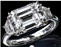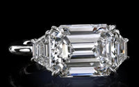 $755 for this ring with 3ct(7*9mm) GHI color emerald moissanite center, GHI color trapezoid moissanite accents in 10K white gold. Size 8