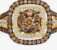 $496 for this ring with a 1ct(6.5mm) GHI color round moissanite center, moissanite accents in 10K yellow gold with black rhodium