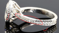 $654 for this ring with 1ct peacock blue dovie doutch moissanite, 2 pieces around 0.5ct peacock blue half moon moissanite and clear white moissanite( half eternity band) in 14K white gold. ( side suppit of stones foloral or leaf theme, half eternity milgrains.)