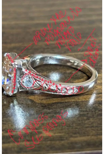I'll work on designing a custom ring that matches these specifications. We can use moissanite for all the stones to keep costs down.