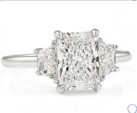 Side stone in step cut tapered bagutte moissanite