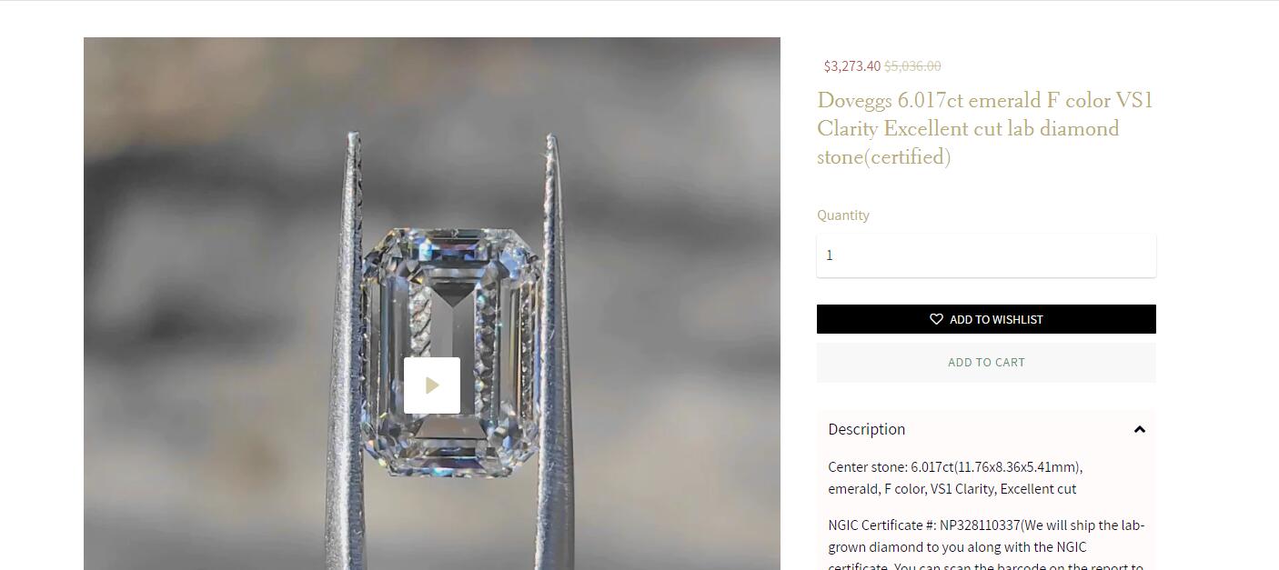 Doveggs 5.246ct emerald D color VVS2 Clarity Excellent cut lab diamond stone(certified)