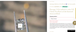 Layaway payment of 2.02ct G color radiant lab grown diamond (50 50)