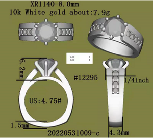 Setting only for Cushion 3.58ct Diamond in lab diamonds Round and Baguette 10k WG Size 7.5