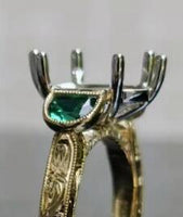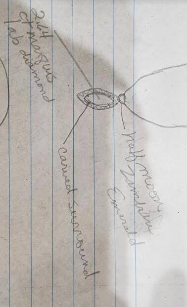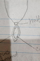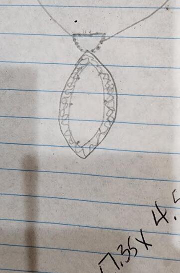semi mount quote : $578 in 14kt yg using 4x6 half moon Zambian emerald with 3mm milgrain bezel then carved halo marquis lab diamond necklace measuring 14.09x7.35x4.52 including 18 in box chain.