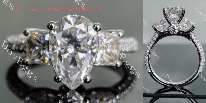 Pear split shank double halo moissanite engagement ring|DovEggs