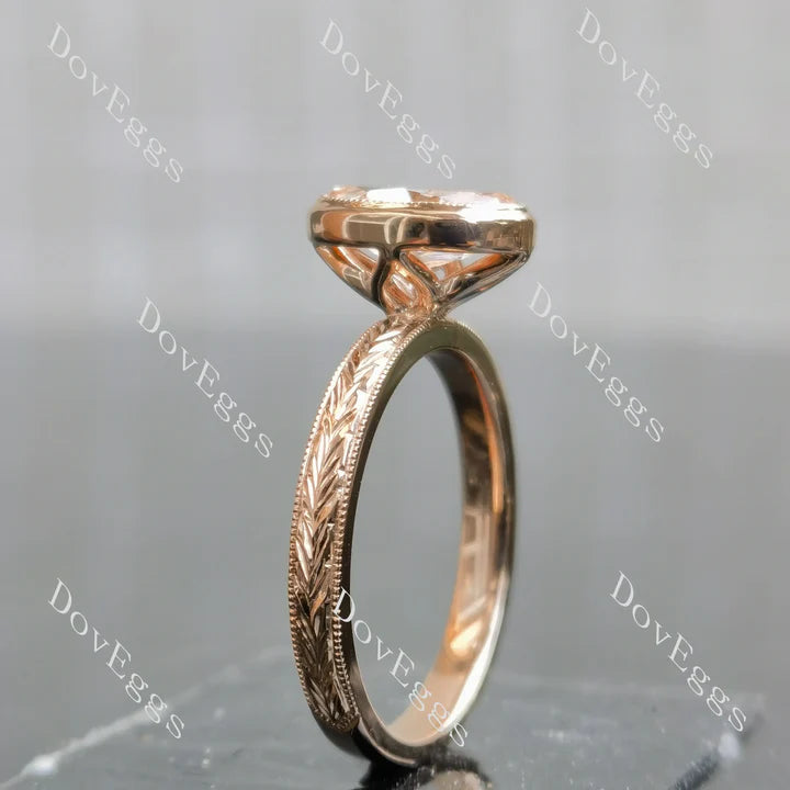 Carved bezel solitaire ethical lab diamond engagement ring only semi-mount only(Exclusively to DovEggs Stones)