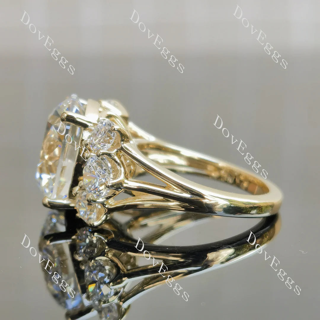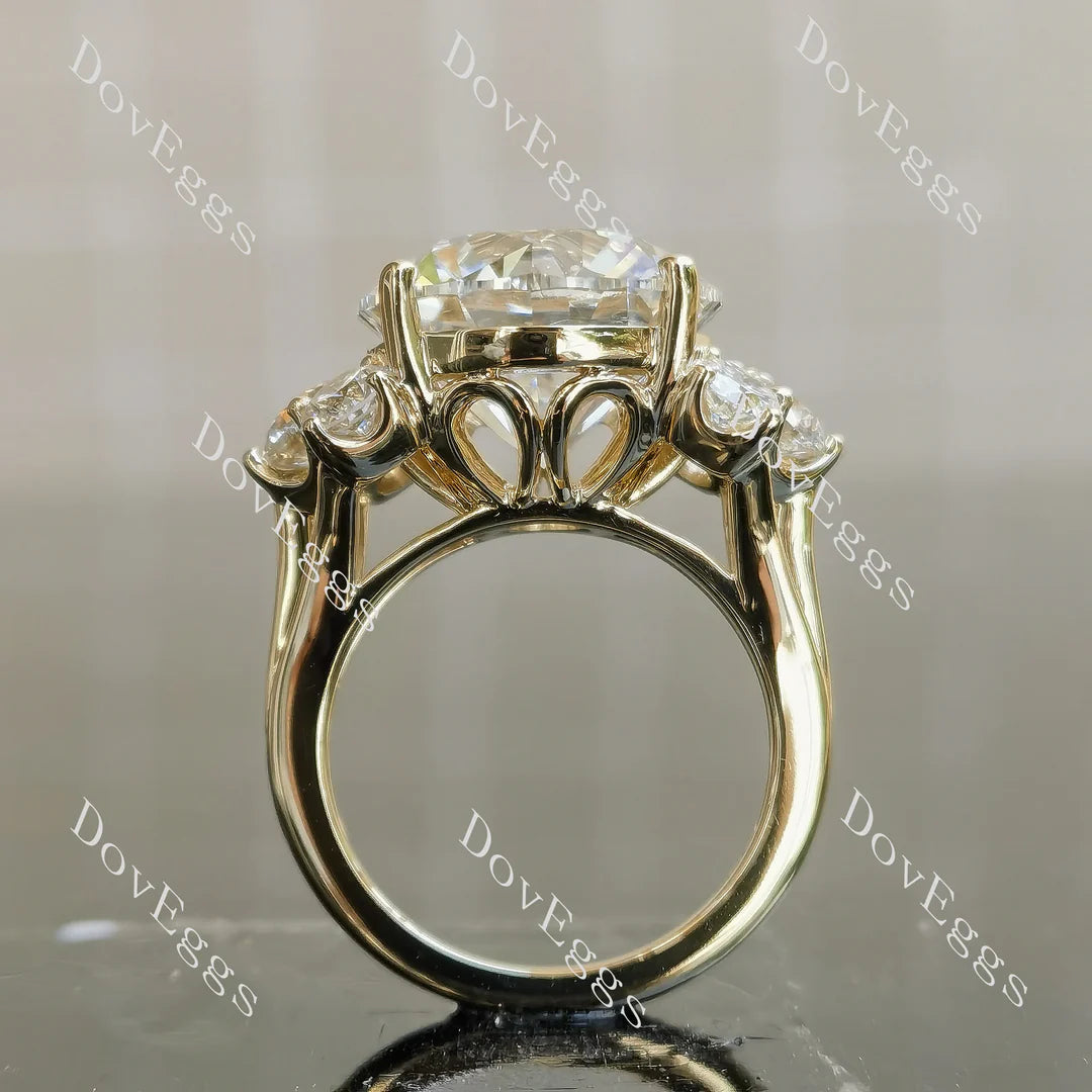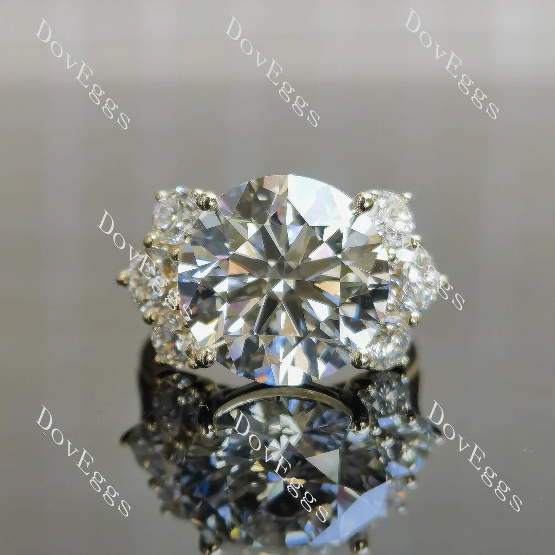 Accents: round, can be near colorless/colorless moissanite accents or lab grown diamond accents or colored gem