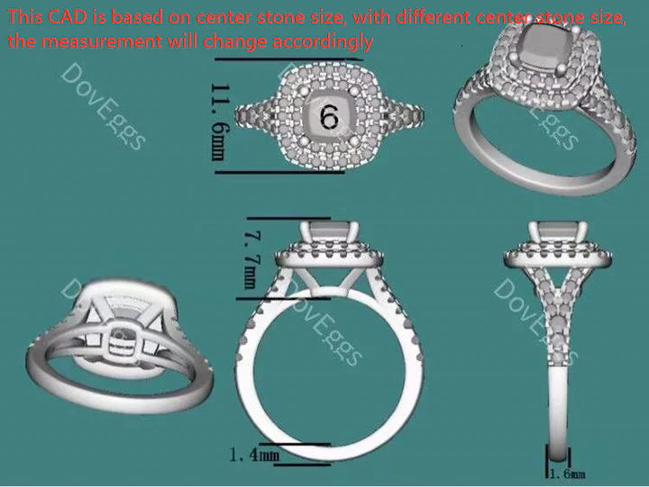 Pave double halo engagement ring only semi-mount only(Exclusively to DovEggs Stones)