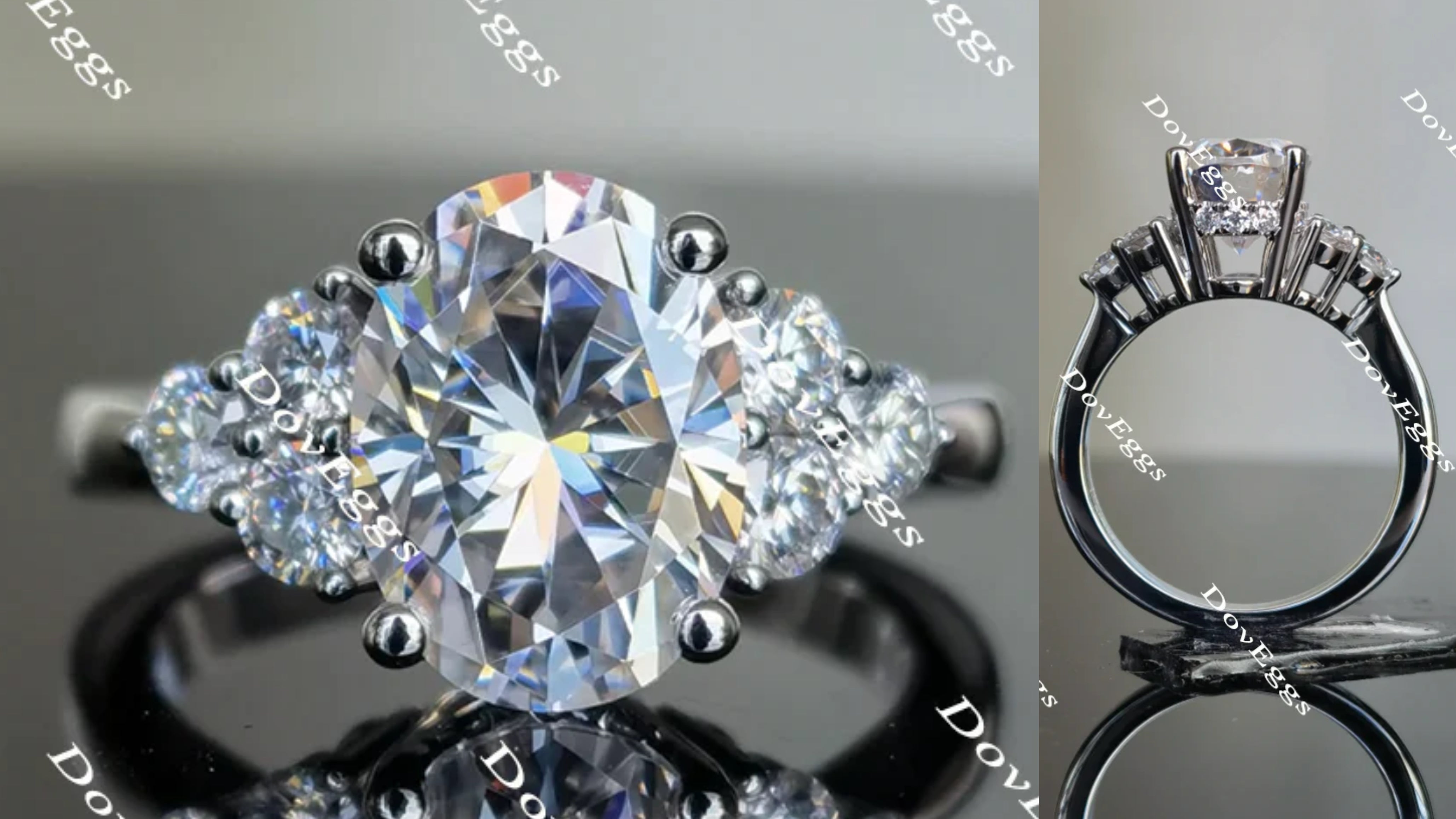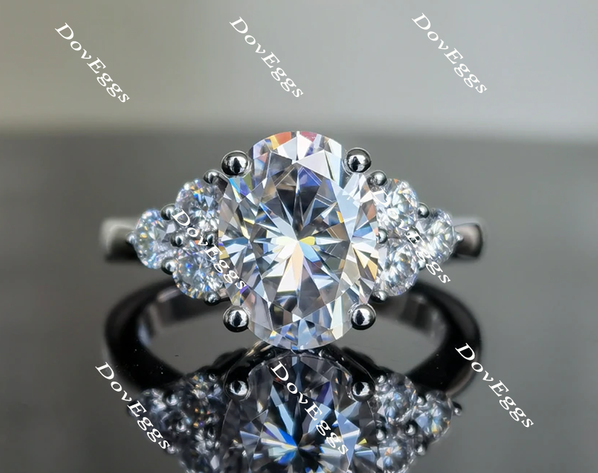 oval moissanite engagement ring|side stone moissanite ring – DovEggs-Seattle