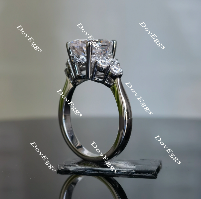Teia Lily-Oval side stone moissanite engagement ring| DovEggs