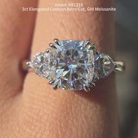 Center stone: 3ct(8*9mm), elongated cushion Astro, GHI moissanite, VS1-VVS1 clarity