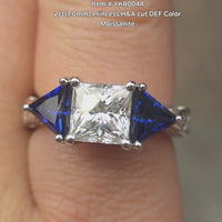 Accents: trillion, intense royal blue sapphire colored gem, VS1-VVS1 clarity