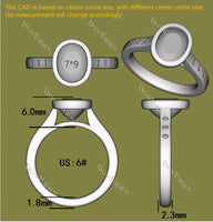 Center stone: 2ct(7*9mm), oval H&A, smokey spark grey moissanite, VS1-VVS1 clarity