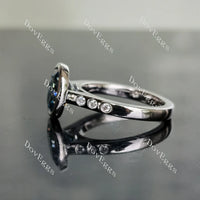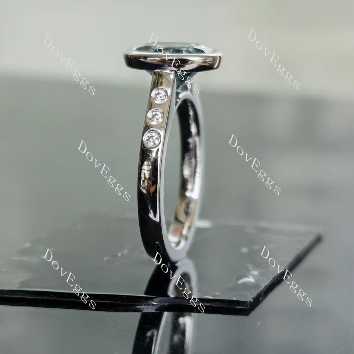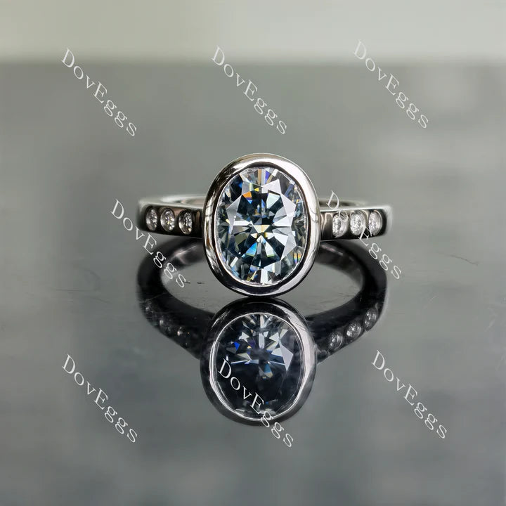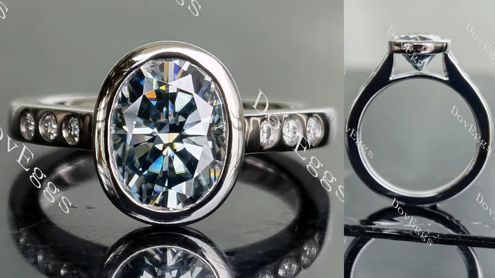 Oval bezel side stones moissanite engagement ring| Doveggs