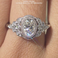 Center stone: 1.5ct(6*8mm), oval Astro cut, stardust grey moissanite, VS1-VVS1 clarity