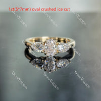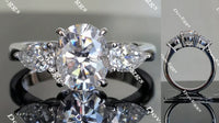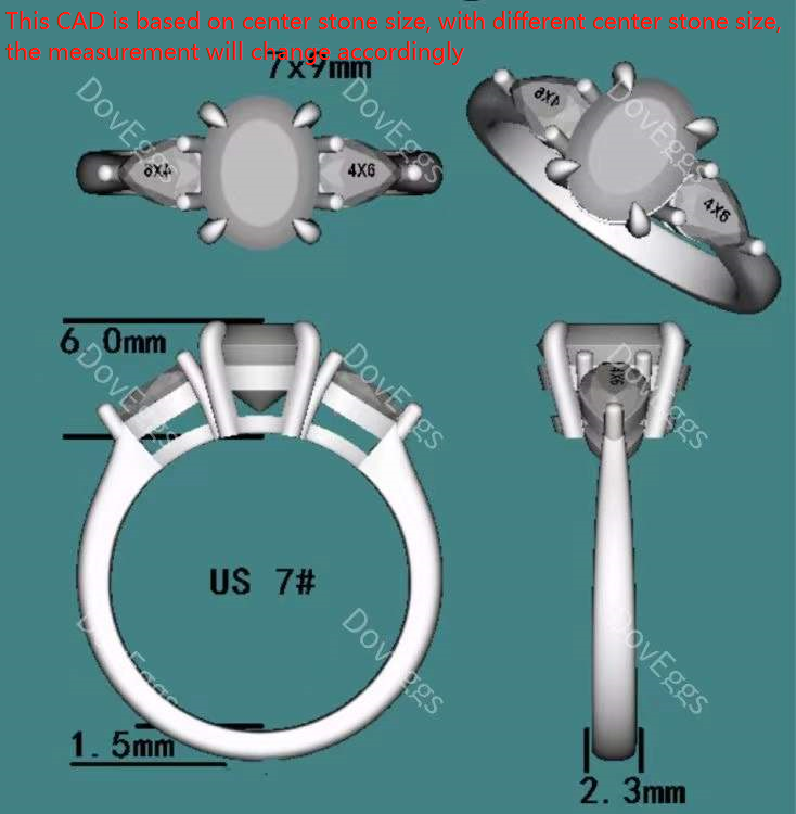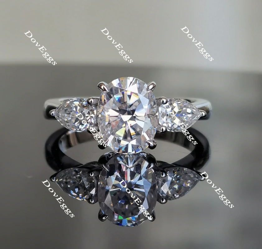 The center stone of picture is 2ct(7*9mm) G-H color oval astro cut moissanite,pear moissanite accents.Ring setting is 10k white gold.
